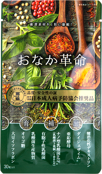 | 配合成分 | 難消化性デキストリンダイジェザイム®︎ 亜鉛含有酵母(亜鉛10%) ナノ型乳酸菌nef®︎ 有胞子性乳酸菌 乳酸菌生産物質 ビートオリゴ糖 大豆イソフラボン |